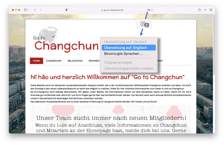 Just click on the icon in the upper right end of the URL address line and choose your desired language.